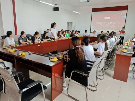 活动伊始,来自藏族、土家族、苗族、蒙古族等族的学生代表踊跃发言,他们做自我介绍、分享家乡特点、文化习俗以及在校学习和生活的感受,展示了民族风俗人情以及来校后的感受,表达了对新学期开启的喜悦和对民族大团结的理解。