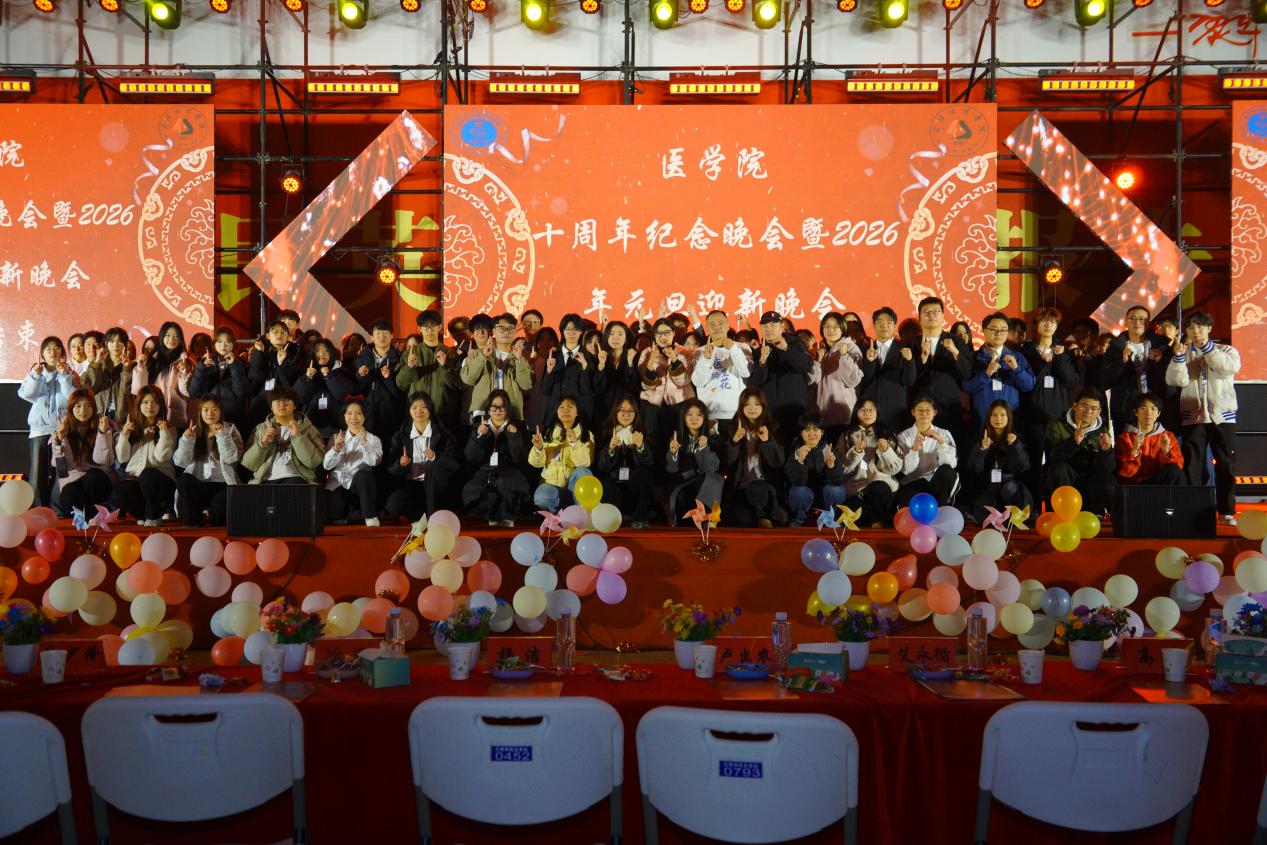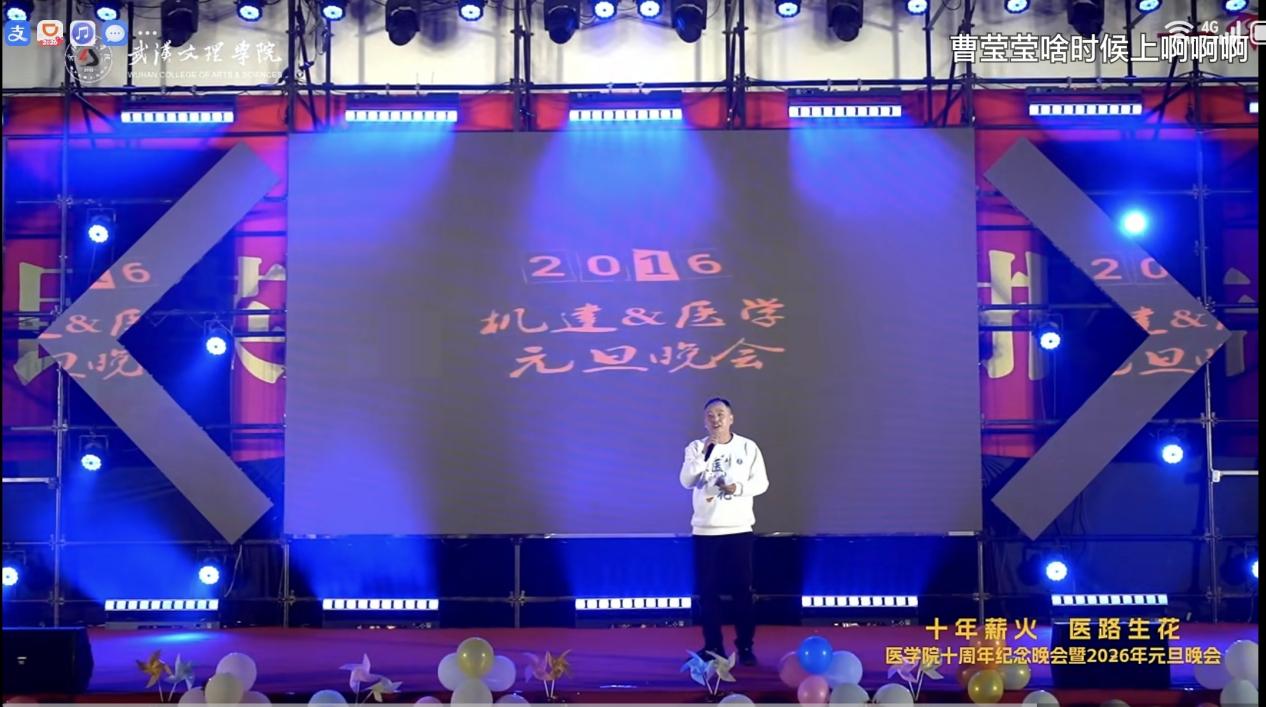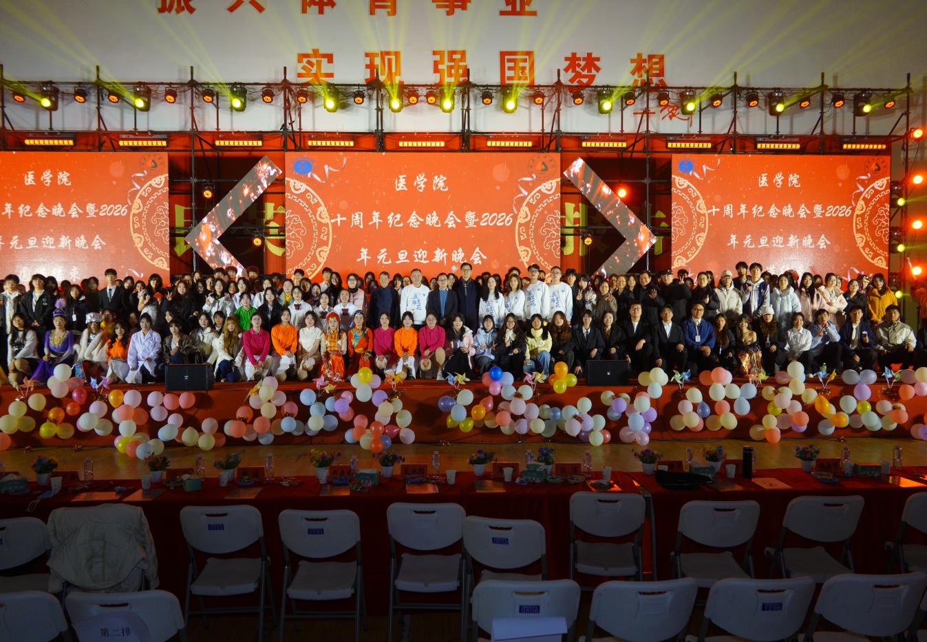 2025年12月18日18时30分,williamhill威廉希尔网址“十载薪火,医路生花”十周年纪念晚会暨2026年元旦迎新晚会在校体育馆举行。williamhill威廉希尔网址院长艾永循、校团委书记卢出农、外国语williamhill威廉希尔网址党总支书记兼行政副院长杨洁、williamhill威廉希尔网址党总支书记兼行政副院长高伟、教学副院长陈涛以及各系主任和教师、全体辅导员、优秀校友代表、2025级全体新生以及100多名演职人员齐聚一堂,共忆williamhill威廉希尔网址十年峥嵘岁月,共祈未来崭新征程。