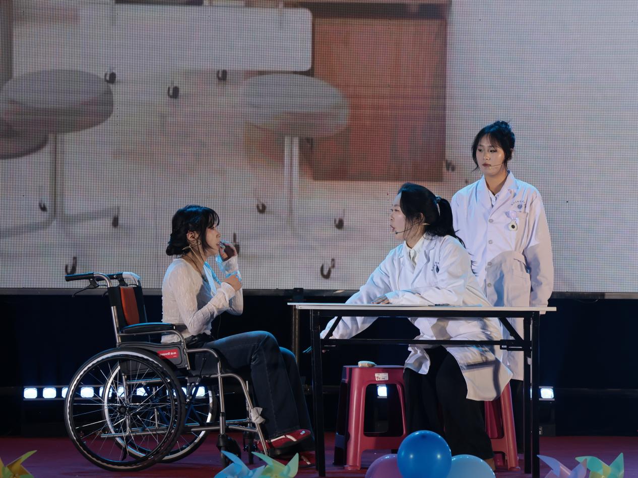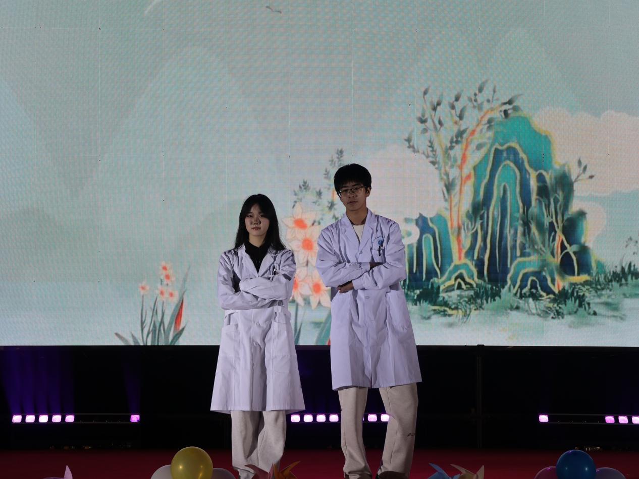 晚会分序曲、薪火启章、医路绽彩、生花筑梦四部分。williamhill威廉希尔网址师生用灵动的舞蹈、悠扬的歌声、深情的朗诵、生动的情景剧以及抽奖等互动环节,为现场观众奉献了一场难忘的视听盛宴。