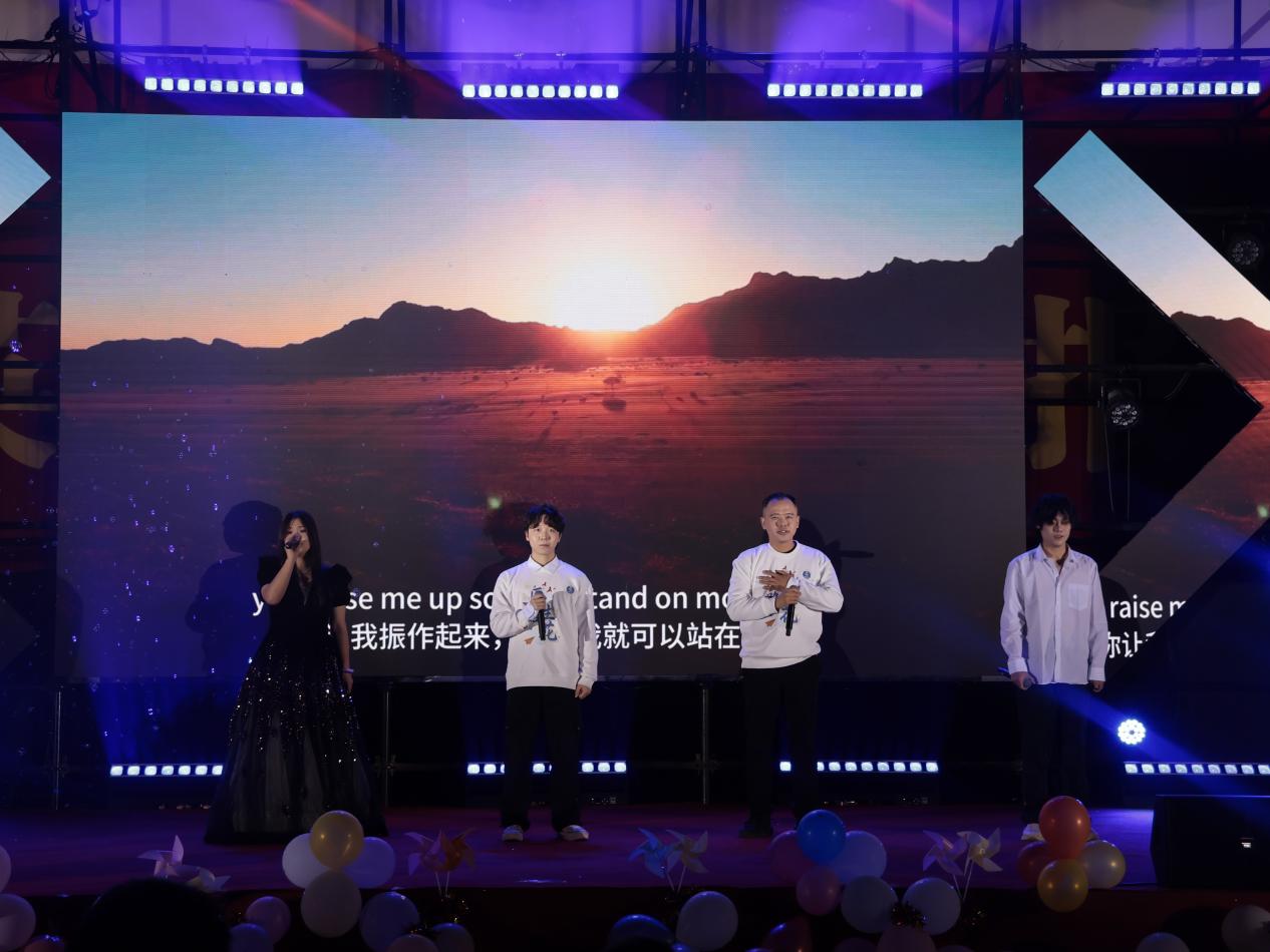 他的“williamhill威廉希尔网址是我们每一名师生成长的摇篮,是我们的肩膀,是那最美的太阳,照耀指引着我们一路前行”的深情表白和与张子涵等师生吟唱歌曲《you raise me up》将晚会推向了最高潮。