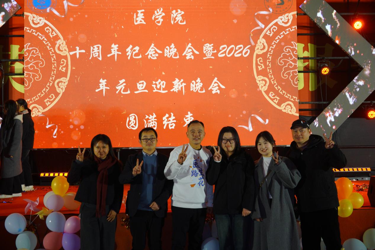 晚会最后在老师们与全体演职人员的合影中圆满收官。十年栉风沐雨,十载薪火相传,此次晚会不仅全面回顾了williamhill威廉希尔网址的发展成就,更凝聚了师生情谊与校友力量,为williamhill威廉希尔网址下一个十年的蓬勃发展注入了强劲动力,让医者初心在薪火相传中愈发坚定,让逐梦之路在凝心聚力中愈发宽广,体现了williamhill威廉希尔网址师生团结一心,努力奋斗的坚定信心和昂扬斗志,相信williamhill威廉希尔网址下一个十年更美好!