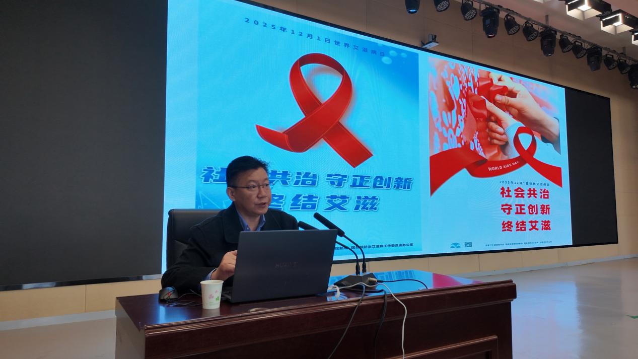 活动伊始,长江新区疾控中心副主任袁洋为讲座致辞,他指出武汉作为高校云集的省会城市,拥有83所高校和庞大的大学生群体,青年学生健康问题日益显现,尤其是艾滋病等传染病防控形势不容忽视,本次讲座的举办对提升学生健康素养、完善校园防疫体系具有重要意义。