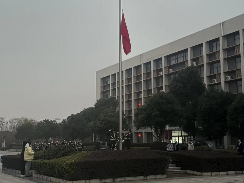 7点,在主持人的引导下,国旗护卫队迈着坚实的步伐护卫五星红旗走向升旗台,伴随着激昂雄壮的《义勇军进行曲》奏响,五星红旗冉冉升起,迎风招展。全体师生肃立致敬,高唱国歌,嘹亮的歌声回荡在校园上空,爱国情怀与青春热忱在每个人心中激荡。