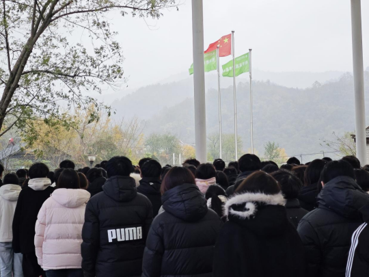 鲜艳的旗帜在风中飘扬,正式开启了本次劳动教育实践的征程。