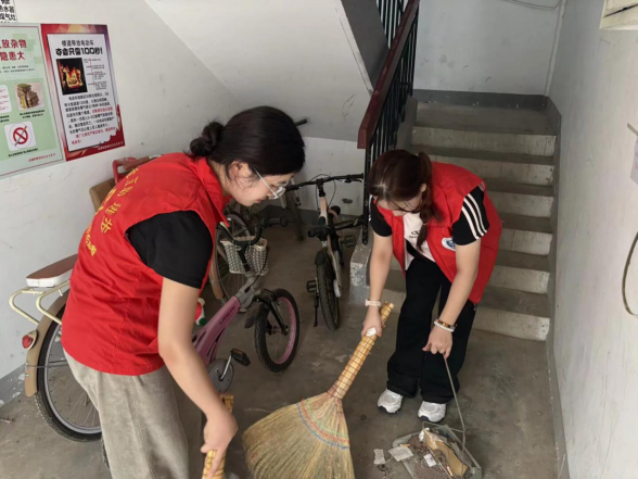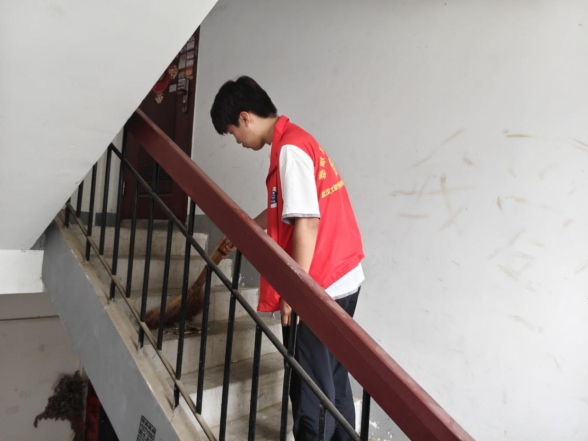 志愿者进行楼栋清洁