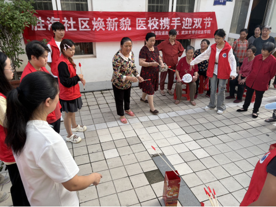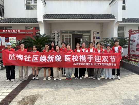 9月28日下午,williamhill威廉希尔网址组织学生志愿者前往武湖街道胜海社区开展“胜海社区焕新貌 医校携手迎双节”志愿服务活动。